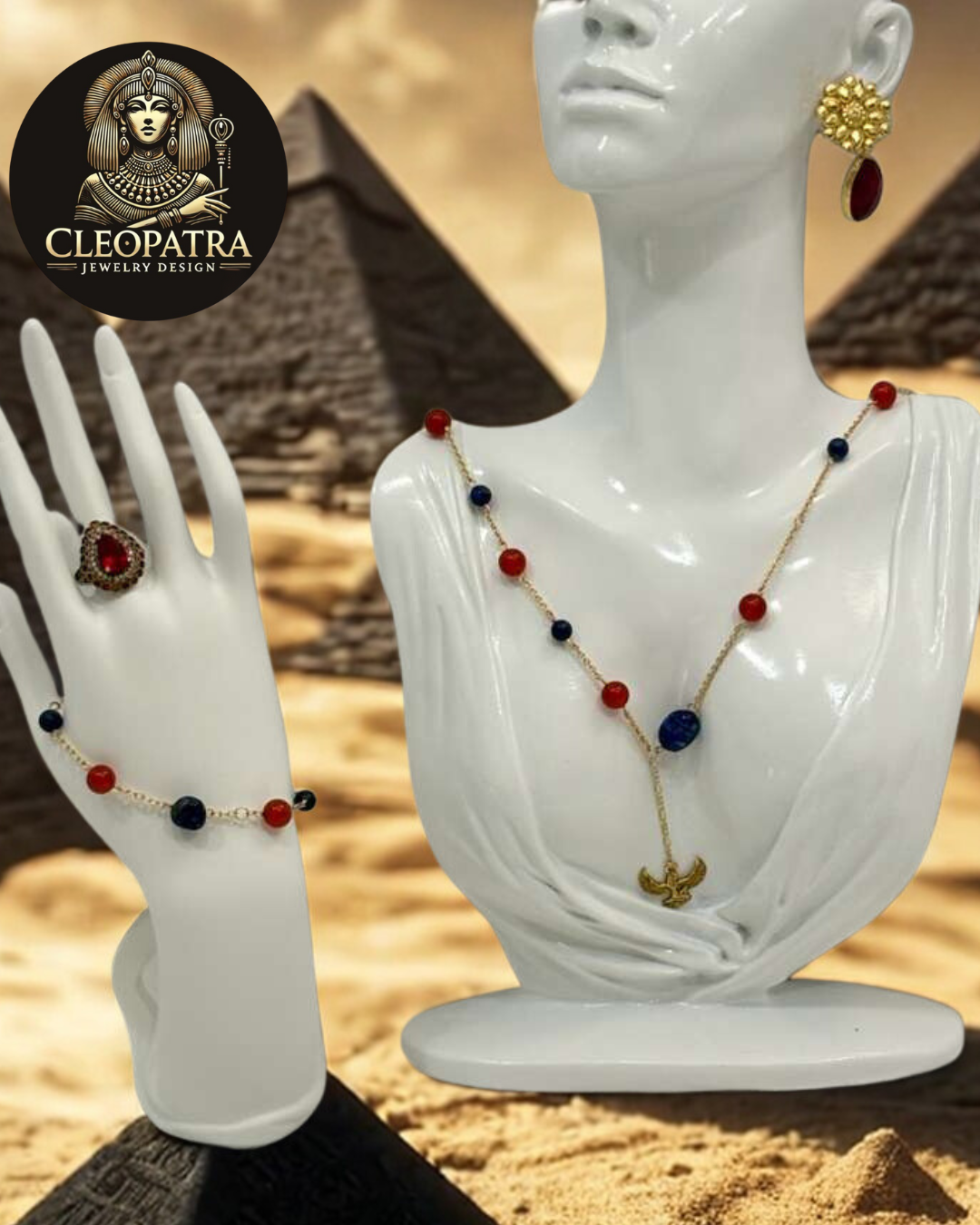 El Set Isis combina la fuerza espiritual del lapislázuli con la energía vital de la cornalina, armonizados bajo la poderosa simbología de la diosa Isis. Cada pieza está diseñada para conectar con la intuición, la protección y el renacimiento, ofreciendo un equilibrio perfecto entre misticismo y belleza. Sus tonos profundos y cálidos evocan la magia del antiguo Egipto, convirtiendo este set en un accesorio único para quienes buscan significado, poder y elegancia en su joyería.
