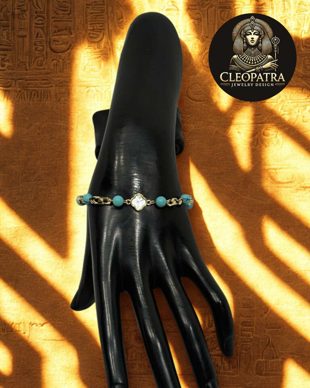 La Turquoise Bracelet está elaborada con auténticas piedras de turquesa, conocidas por su energía protectora y su capacidad para aportar equilibrio y paz interior. Sus tonos azules vibrantes evocan la calma del océano y añaden un toque fresco y elegante a cualquier estilo. Una pieza ideal para quienes buscan serenidad, estilo y un accesorio lleno de buena energía.